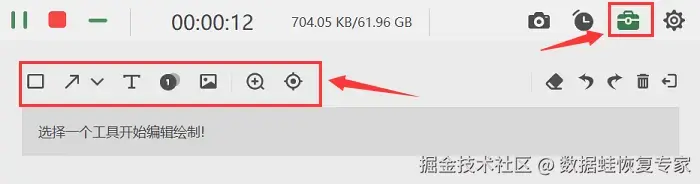 步骤4:在录制的过程中,您还可以使用工具箱里的工具对视频进行标注、加字、放大等个性化的编辑与绘制。
