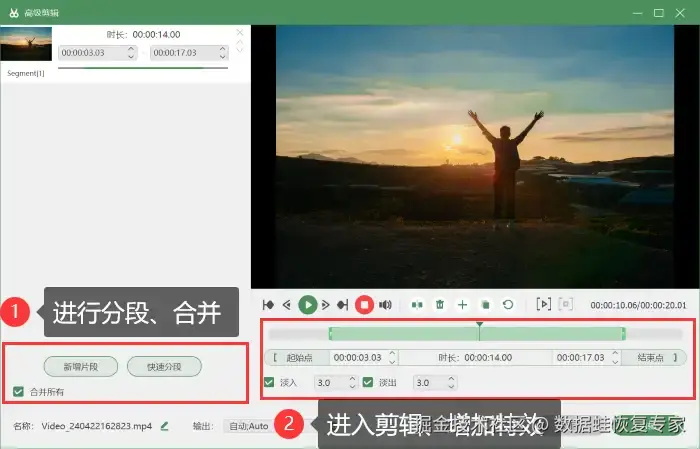 步骤5:录制完成后,可以直接通过预览视频进行保存,也可以点击进入 【高级剪辑】 页面对视频进行即时的剪辑、增加特效等操作,让您的视频更加精彩!