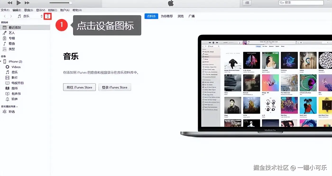步骤1:下载iTunes软件到电脑,用数据线连接手机和电脑,运行iTunes,点击苹果手机的设备图标。