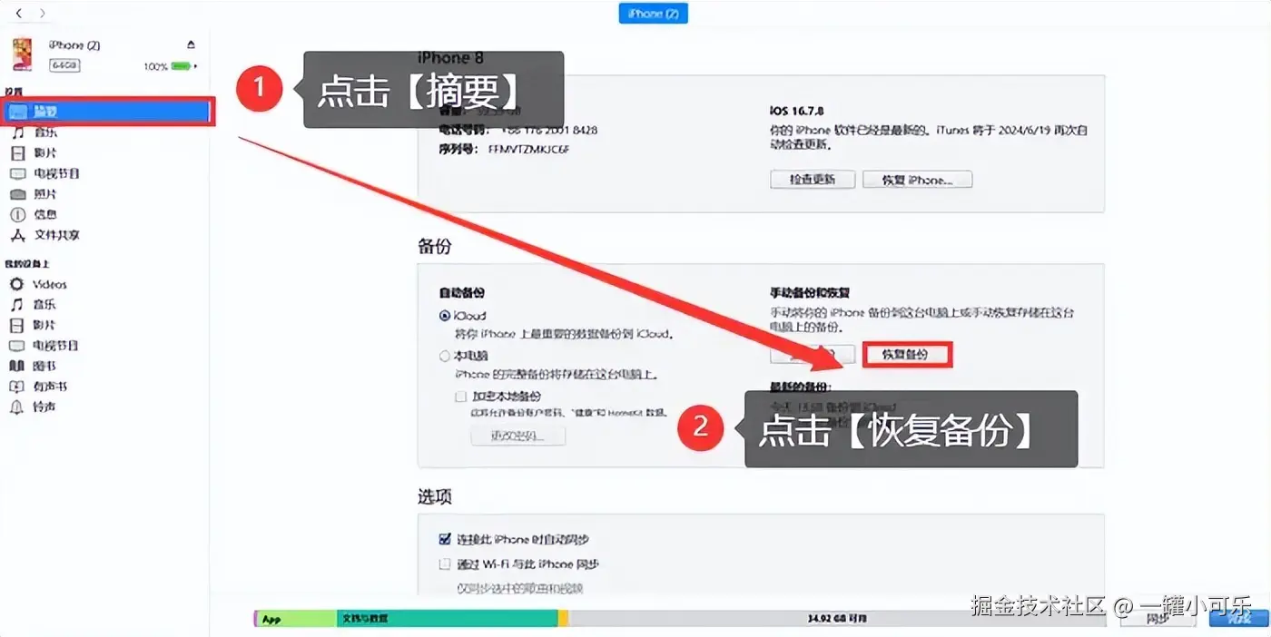 iTunes备份是专门用于备份苹果手机数据的一个软件,用户可以通过这个软件备份好手机的数据,然后进行恢复,则可以解决苹果的微信聊天记录删除了能恢复吗的问题。但是这个操作技巧需要提前备份好手机数据才能找回被删除的聊天,对没有定期备份的习惯的朋友不是很友好。