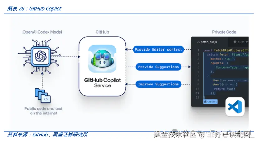 GitHub Copilot是一个GitHub和OpenAI合作产生的AI代码生成工具,可根据命名或者正在编辑的代码上下文为开发者提供代码建议。官方介绍其已经接受了来自 GitHub 上公开可用存储库的数十亿行代码的训练,支持大多数编程语言。