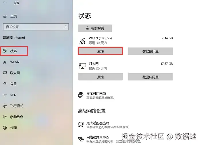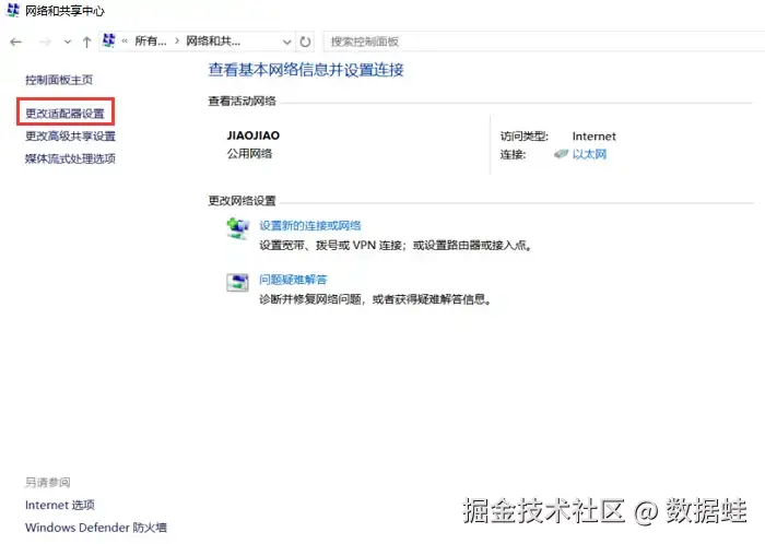 第二步:在左侧菜单中选择 “更改适配器设置” ,右键点击要更改IP地址的网络连接(如以太网或Wi-Fi),选择“属性”。