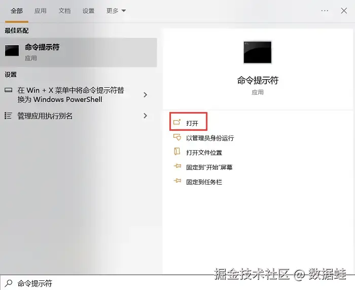 第一步:按下Win键,输入 “命令提示符” ,然后按Enter键打开命令提示符。