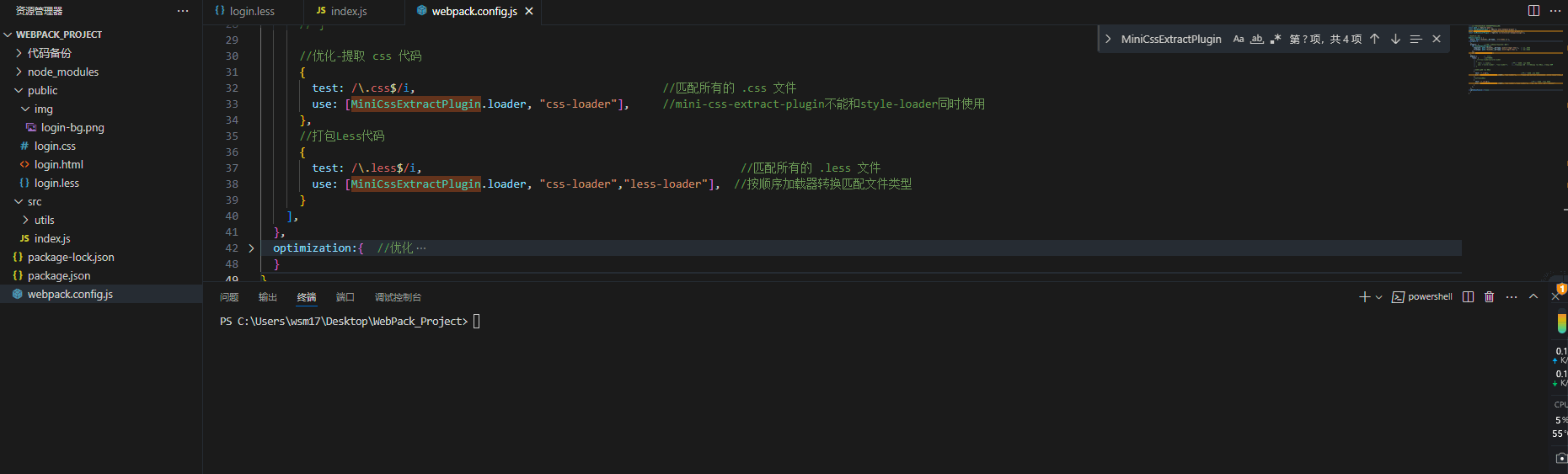 在webpack.config.js文件中引入并配置css-minimizer-webpack-plugin