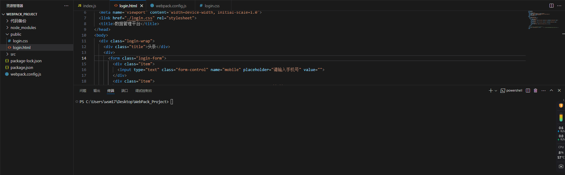 下载 html-webpack-plugin 本地软件包到项目中: npm i html-webpack-plugin --save-dev
