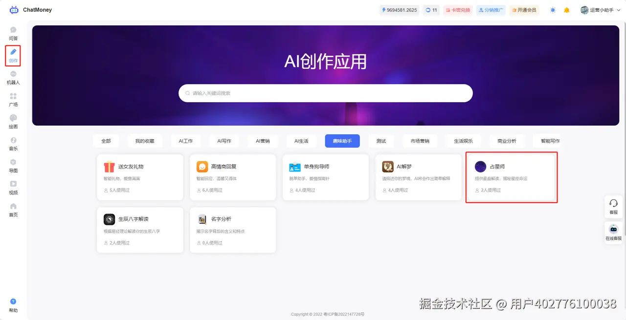 - 打开创作,找到占星师
