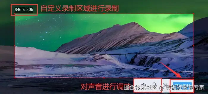 第二步:使用热键 【Ctrl+Alt+S】 打开录屏功能,选择录制的区域,调节声音后点击 【开始录制】 进入录屏。