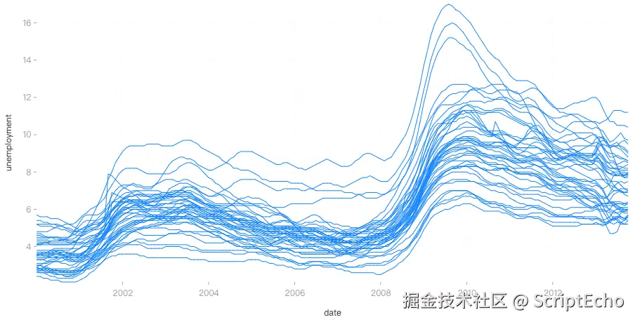 encode方法指定数据的x轴、y轴和颜色映射。 - 使用