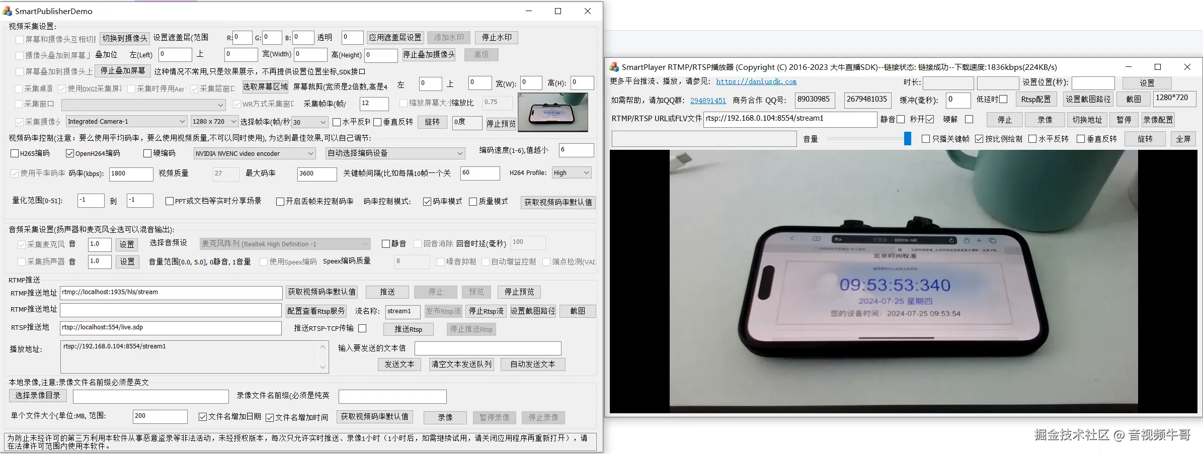 之前说过多次,轻量级RTSP服务的优势是,无需用户单独部署RTSP或者RTMP服务,即可实现本地的音视频数据(如摄像头、屏幕、窗体、麦克风、扬声器),编码后,汇聚到内置RTSP服务,然后,对外提供可供拉流的RTSP URL。