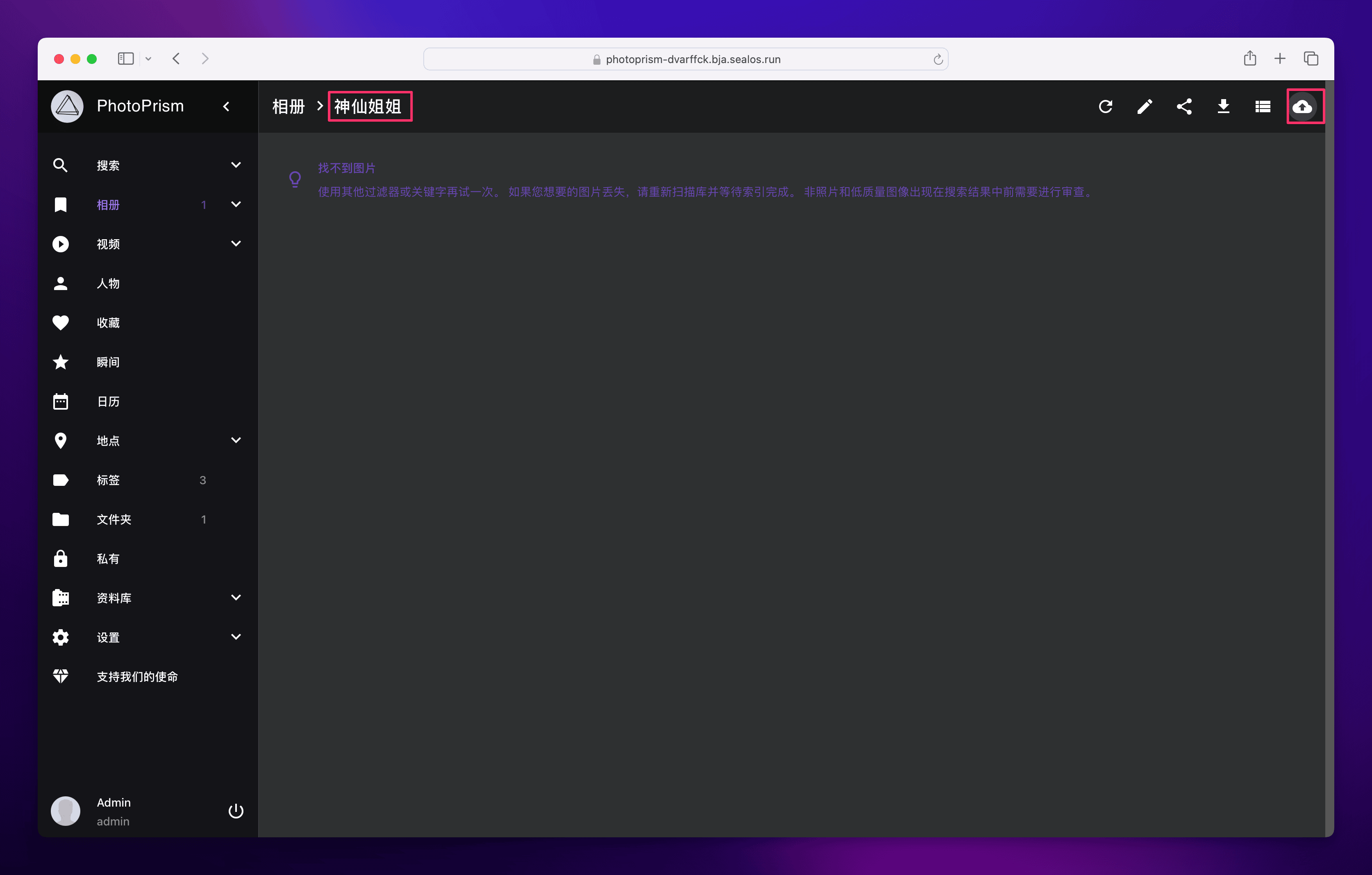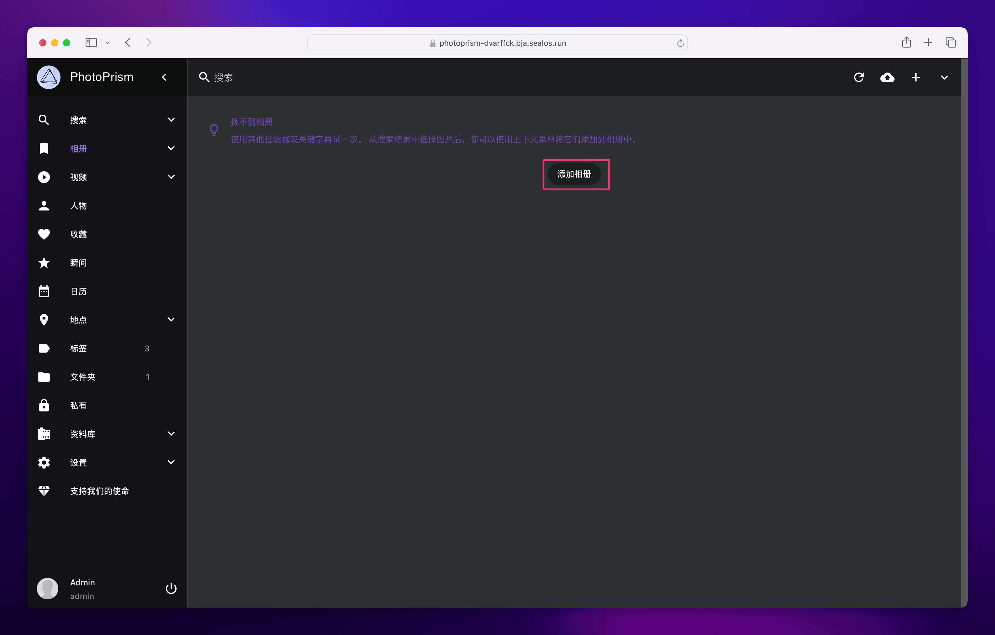 直接点击这个图标就可以打开 PhotoPrism 的可视化界面了。
