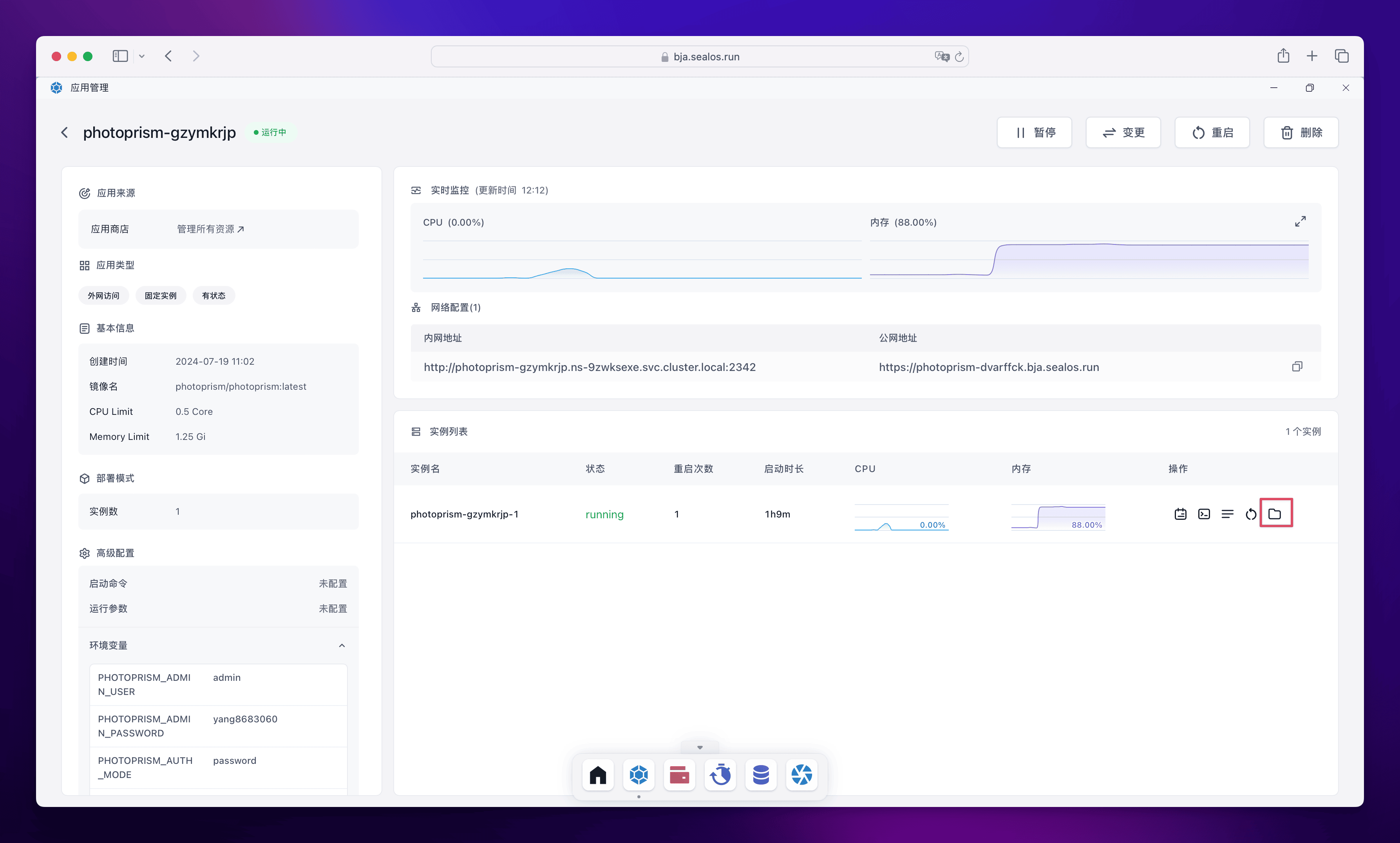 等待应用状态变成 running 之后,直接点击外网地址便可打开 PhotoPrism 的可视化界面。