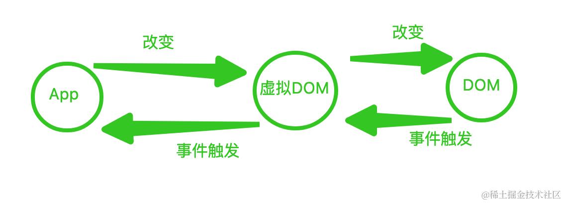 通过 JS 模拟网页文档节点,生成 JS 对象树(虚拟 DOM),然后再进一步生成真实的 DOM 树,再绘制到屏幕。如果有内容发生改变,React 会重新生成一棵新的虚拟 DOM 树,与前面的虚拟 DOM 树进行比对 diff,把差异的部分打包成 patch,再应用到真实 DOM 中,然后渲染到浏览器屏幕上。