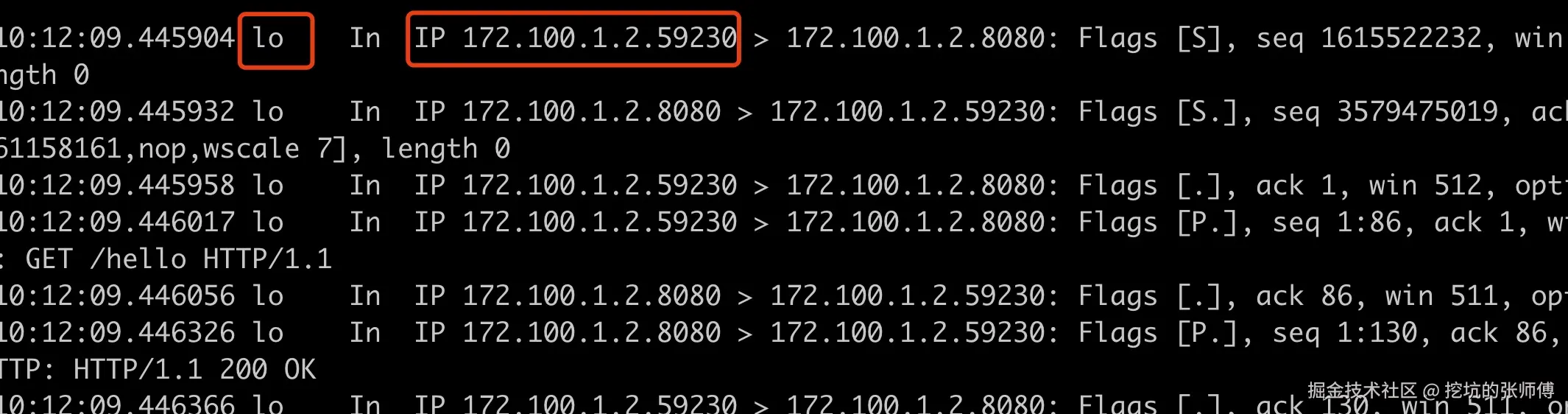 经过路由决策后,SYN 包将通过 lo 接口发出。