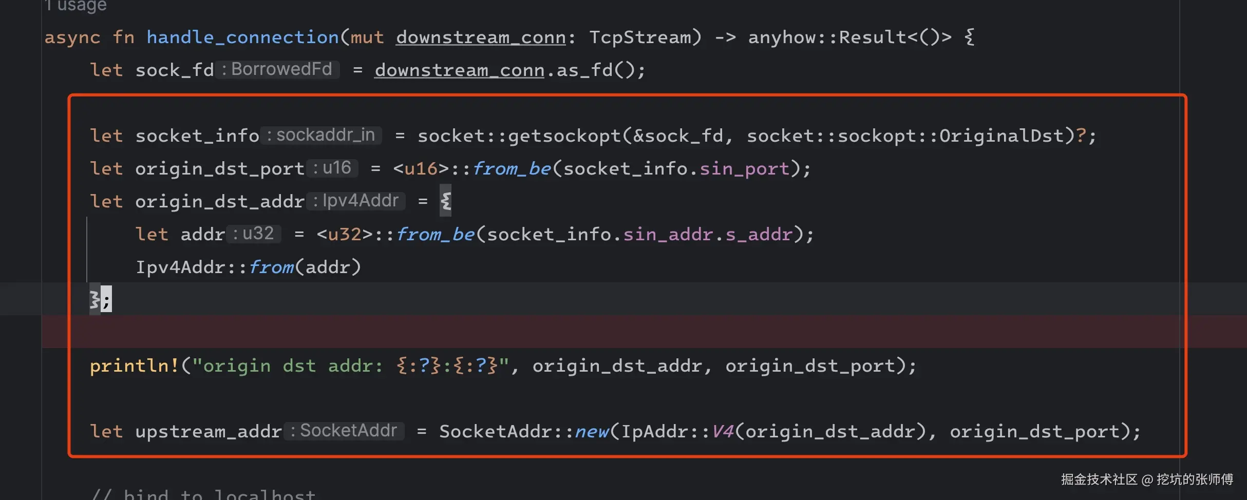 接下来,我们来看 tproxy-rs 与后端服务器通信的部分,即下图红框所示的部分。