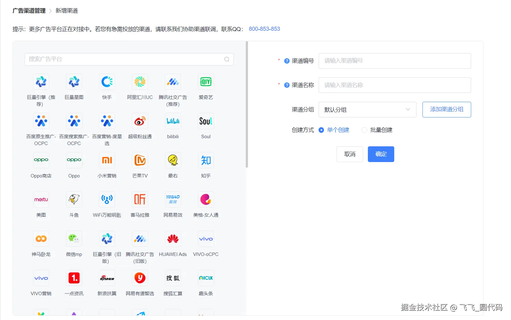 openinstall 目前提供百家主流广告平台媒体供创建,如果你还有其他需要投放的渠道也可以联系官方拓展对接,或者自行创建【通用】渠道对接。