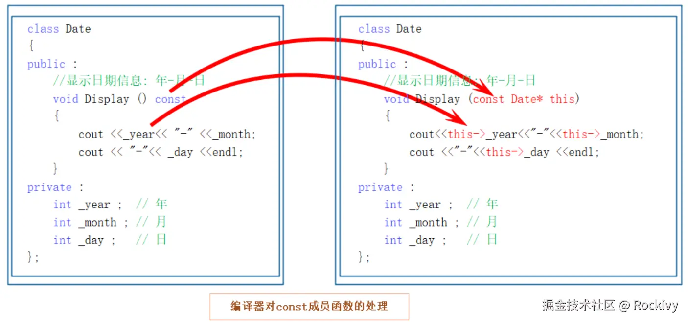 写法上要注意: const修饰是写在函数后面