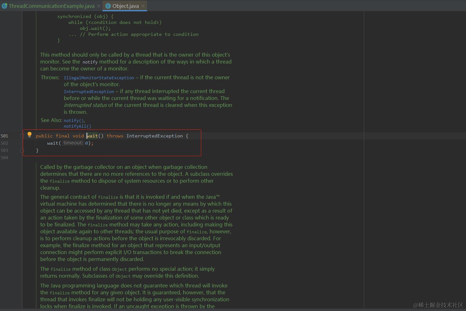 如下,我们来扒扒它们的部分源码,学习开发它们的实现原理。如下我就以wait()方法为例。