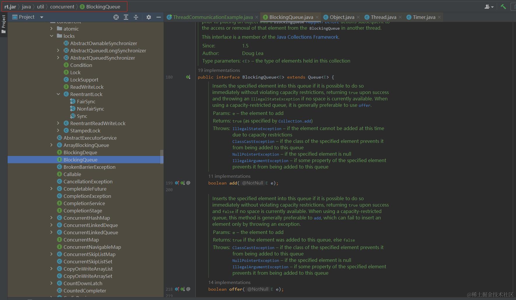 如下是部分BlockingQueue源码的截图,这个同学们跟随我一同来扒扒看。