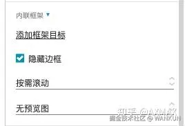 2、设置内联框架属性,隐藏边框、按需滚动、无预览图