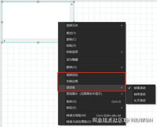 - 滚动条(Scrollbars):包含按需滚动、始终滚动、从不滚动,设置axure内联框架滚动条属性