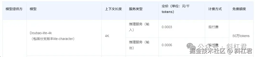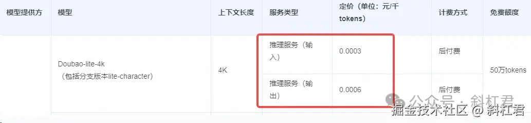 例如,下面图中所示的豆包的模型,定价是0.0003元/千tokens(一会儿再讲还有个0.0006是什么意思)。