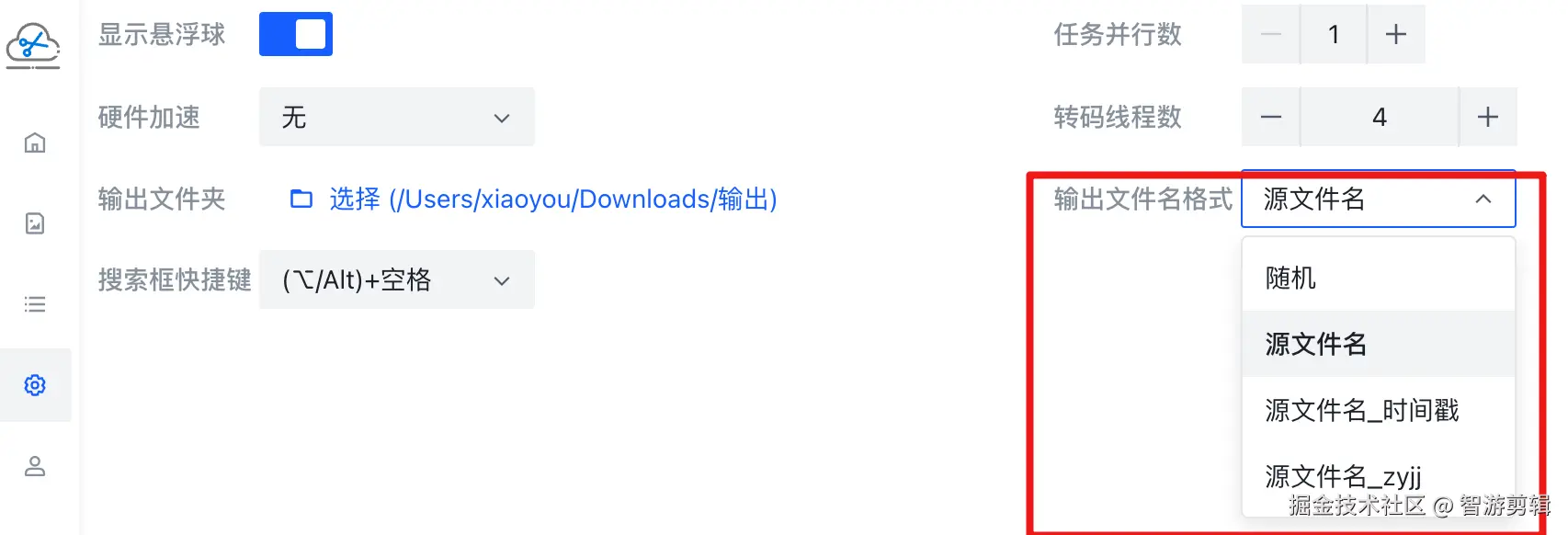 之前我们输出的文件格式都是随机的字符串,现在我们可以直接在设置里面自定义输出文件格式了,大家可以选择自己希望的格式,这样就避免输出后找不到源文件了
