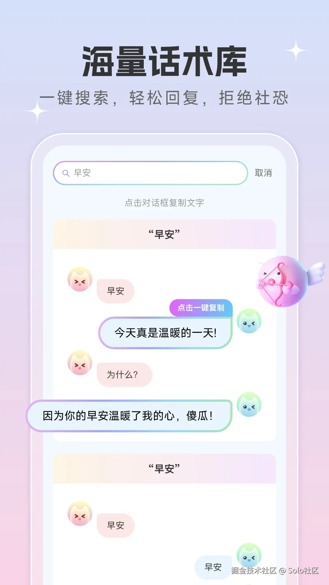- 40W+聊天话术:搜索对方的话,一键复制黏贴获取最佳聊天方案,方便快捷,拉近你们之间的距离。