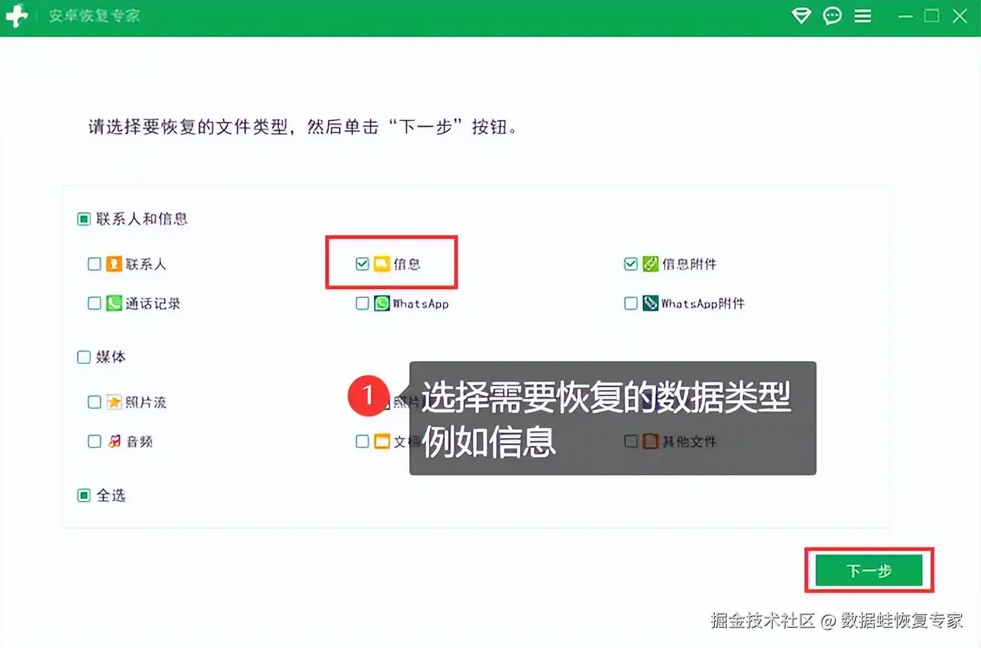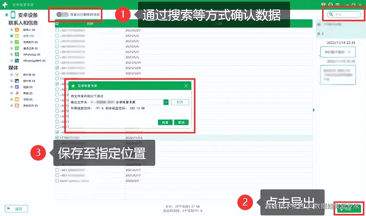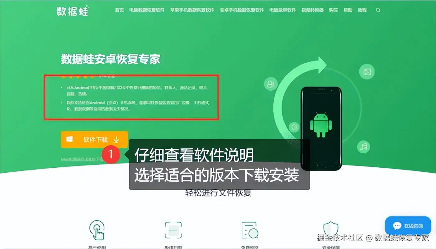 在面对安卓手机永久删除的文件时,专业的数据恢复软件成为了我们的得力助手。我们需要选择一款可靠且良好的软件,以确保数据的安全和隐私。比如【数据 蛙安卓恢复专家】,通过扫描手机的存储空间,软件将列出可恢复的文件,并允许我们选择恢复。除了有一定恢复概率,手机恢复被删除的文件的操作也十分简单,只需要根据以下步骤进行操作: