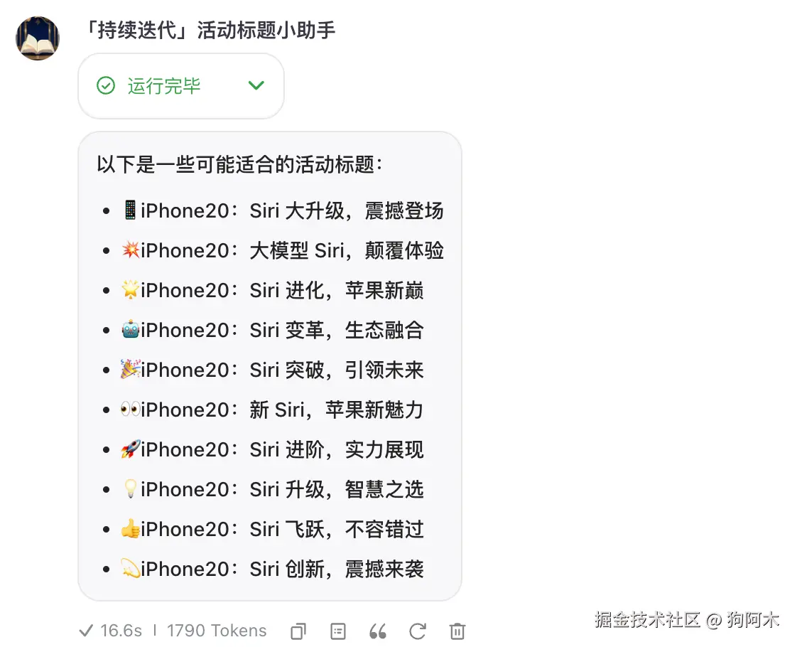 是不是还不错?如果我们可以提供更多示例标题,或者更加高质量的标题、以及本次创作的信息,AI势必可以产出更好的slogan。
