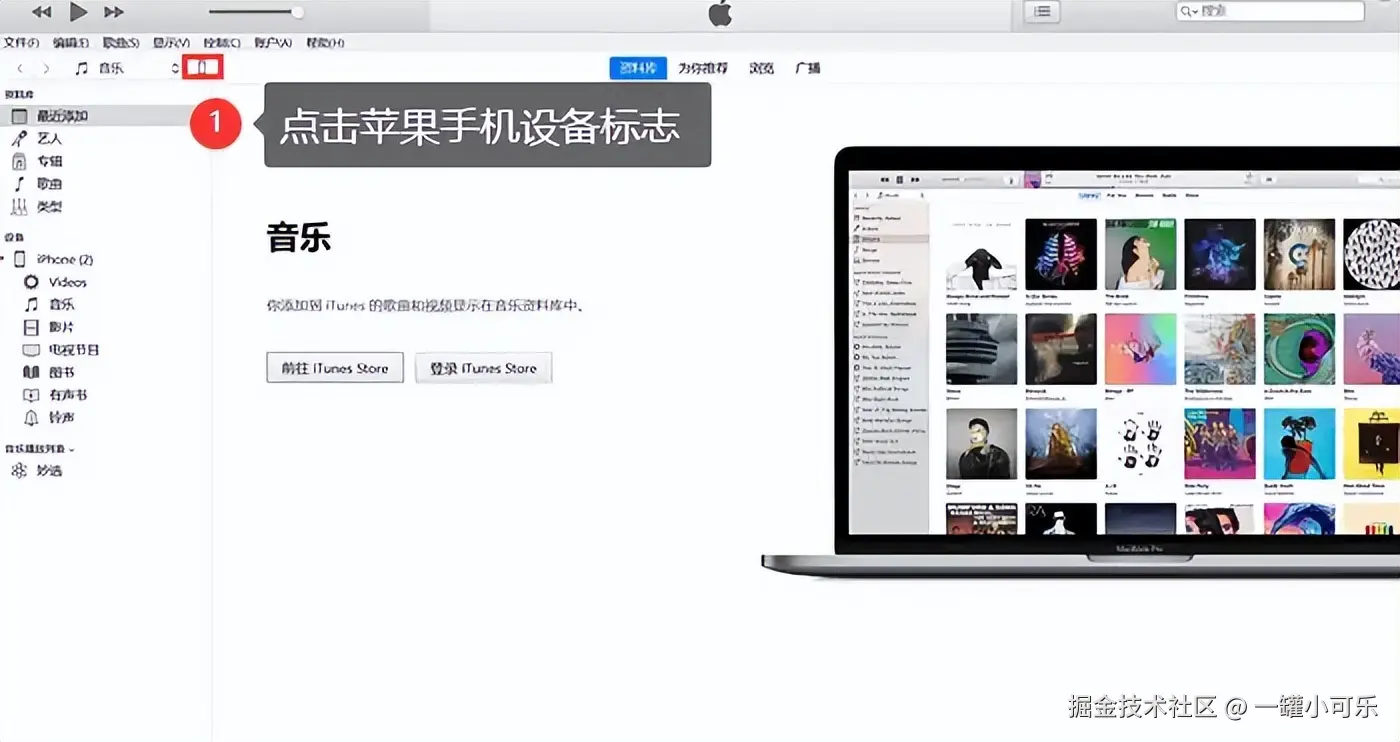 步骤2:iTunes备份手机数据,完成之后,点击左上方的设备标志。