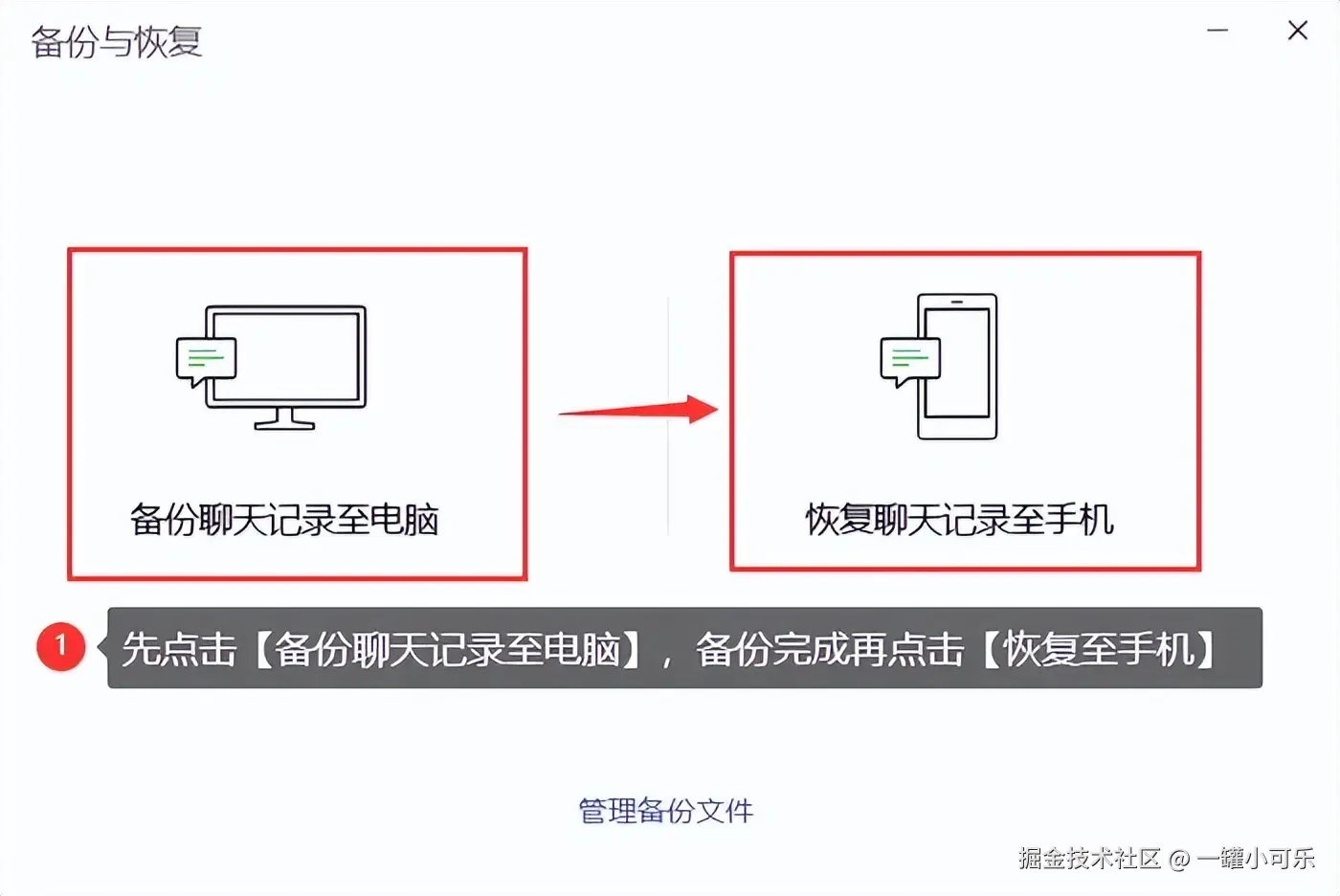 步骤2:先点击 【备份聊天记录到电脑】 ,等待备份完成后,再点击 【恢复聊天记录至手机】 。完成上述操作后,等待几分钟,即可在手机上找到被删除的微信聊天记录。