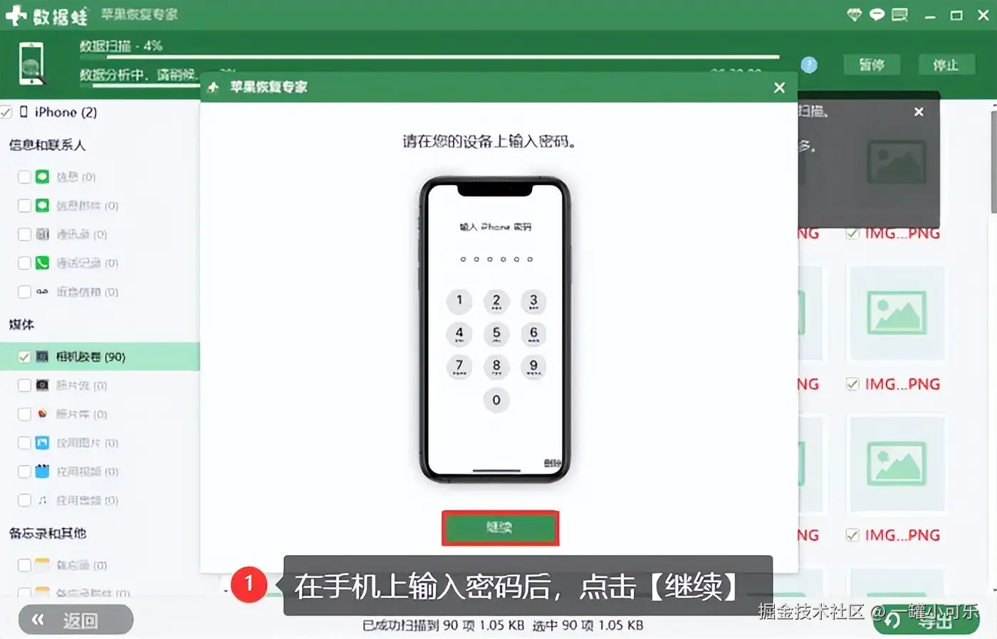 步骤2:完成安装之后,需要用到数据线将设备和电脑连接在一起,进行数据扫描。在扫描的过程中,需要在手机上确认 【是否信任】 该电脑扫描数据,输入密码即可。