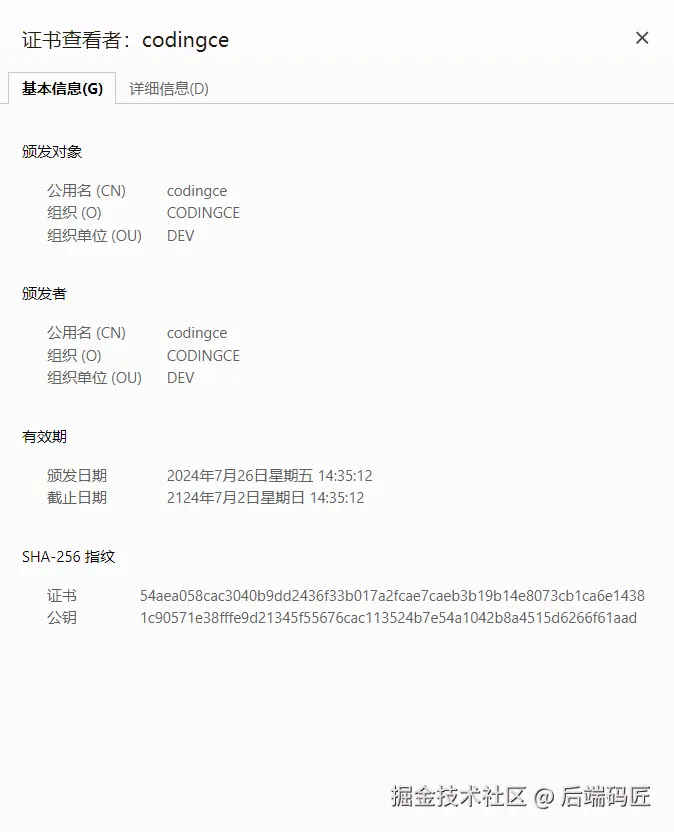 Common Name (e.g. server FQDN or YOUR name) []:codingce.com.cn
