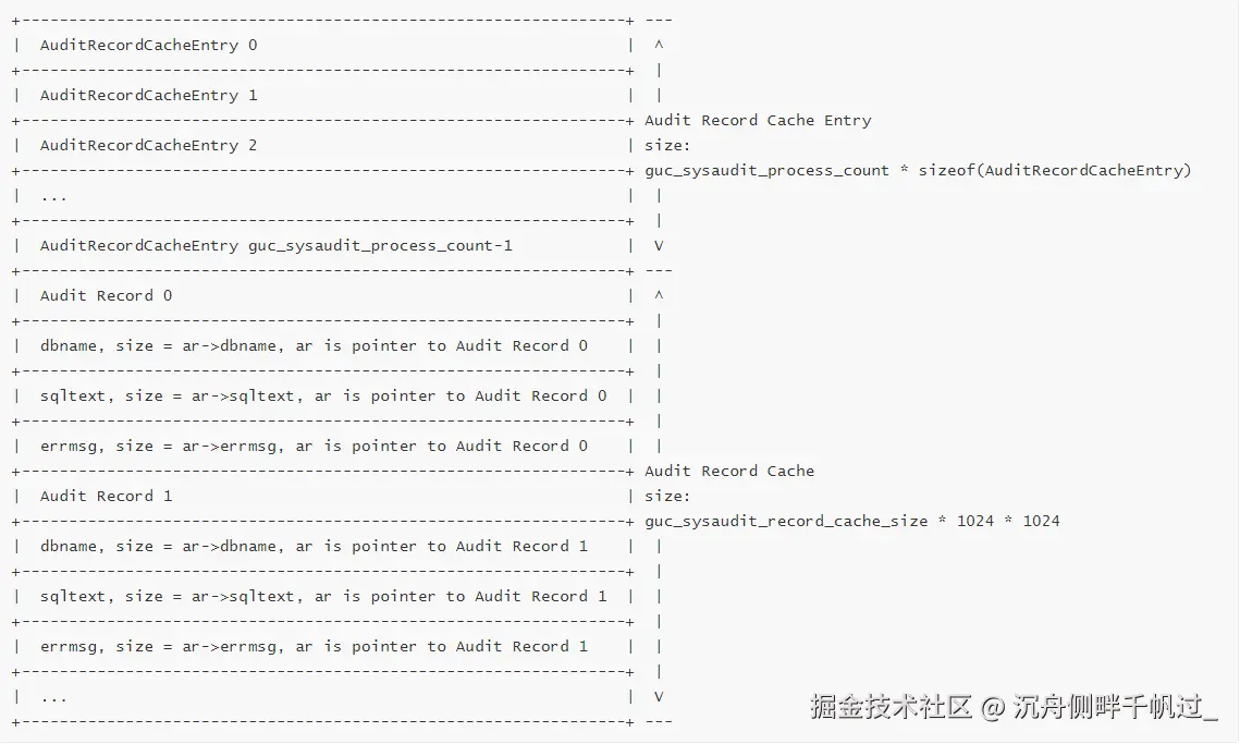 - 大小为(单位为Byte):guc_sysaudit_process_count * sizeof(AuditRecordCacheEntry) + ((Size)guc_sysaudit_record_cache_size * 1024 * 1024)