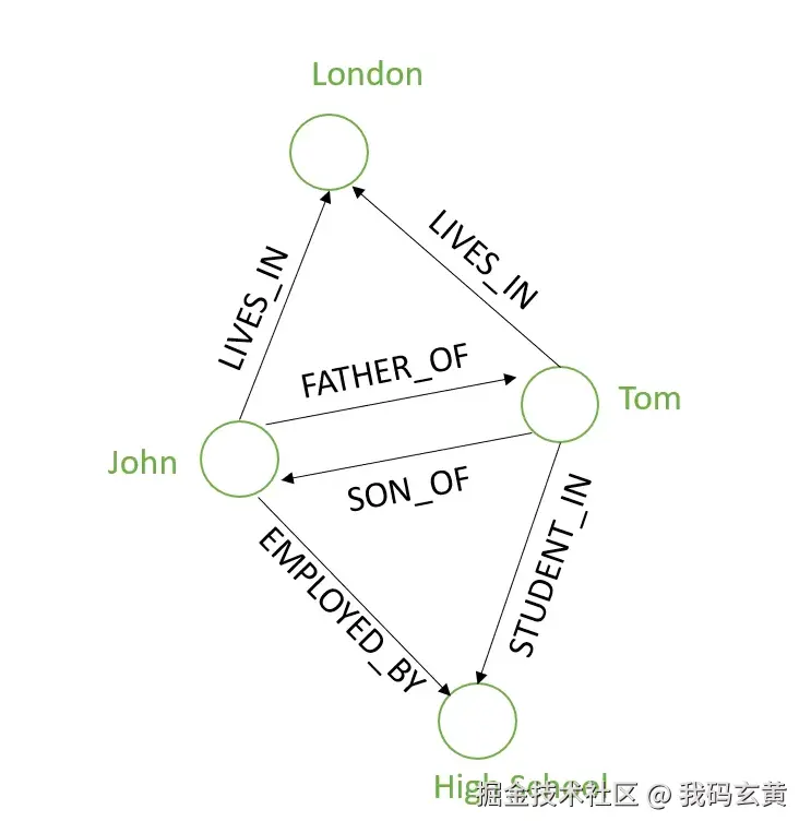 关系:这些是节点之间的连接,定义不同实体之间的交互或关系。例如,一个人可以通过“EMPLOYED_BY”关系与公司建立联系;或者通过“LIVES_IN”关系与某个地方建立联系。