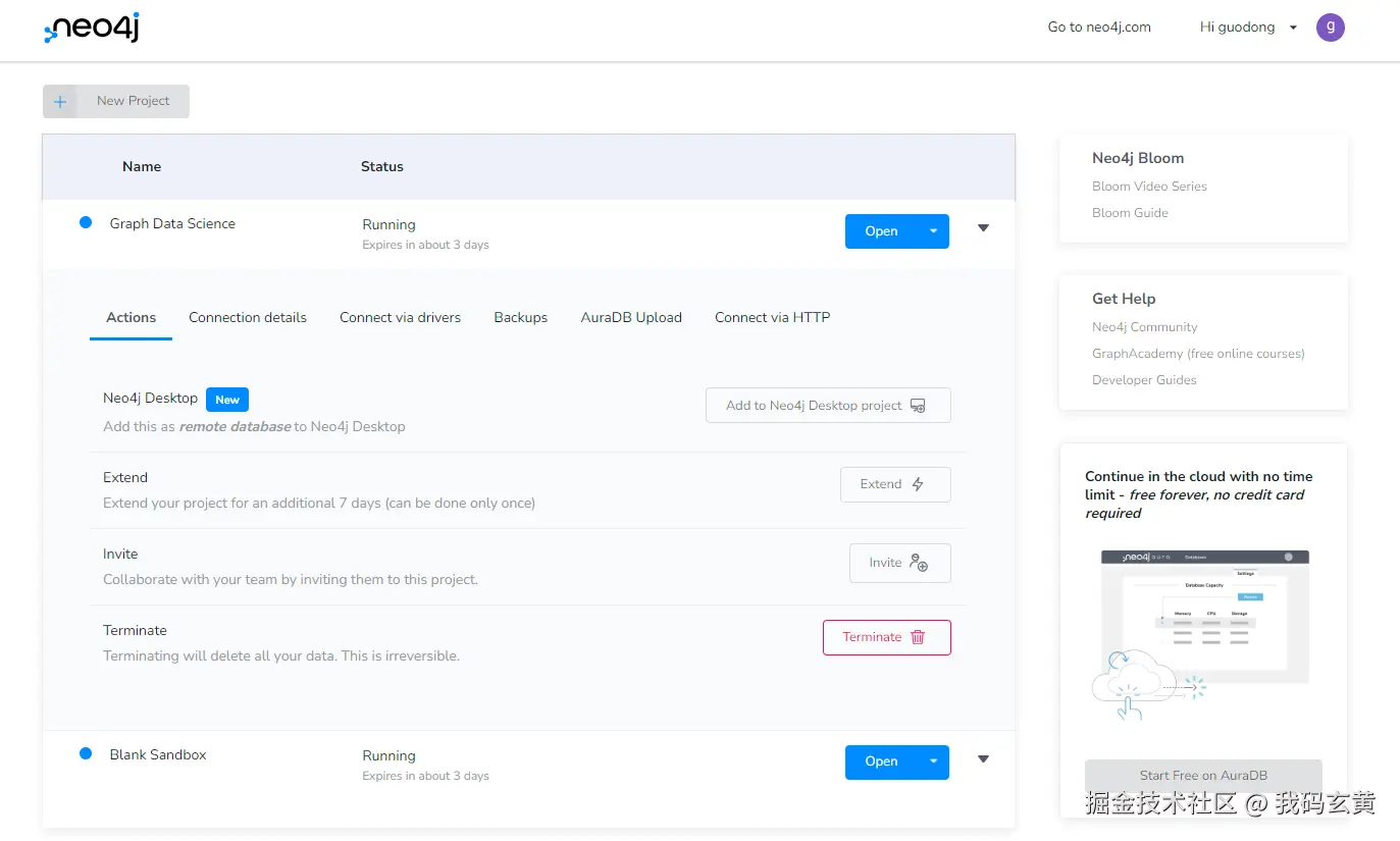 我这里选择的是 Neo4j Sandbox
