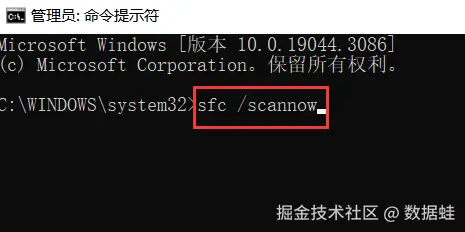 第二步:输入sfc /scannow,按Enter键。系统将扫描并修复损坏的系统文件。