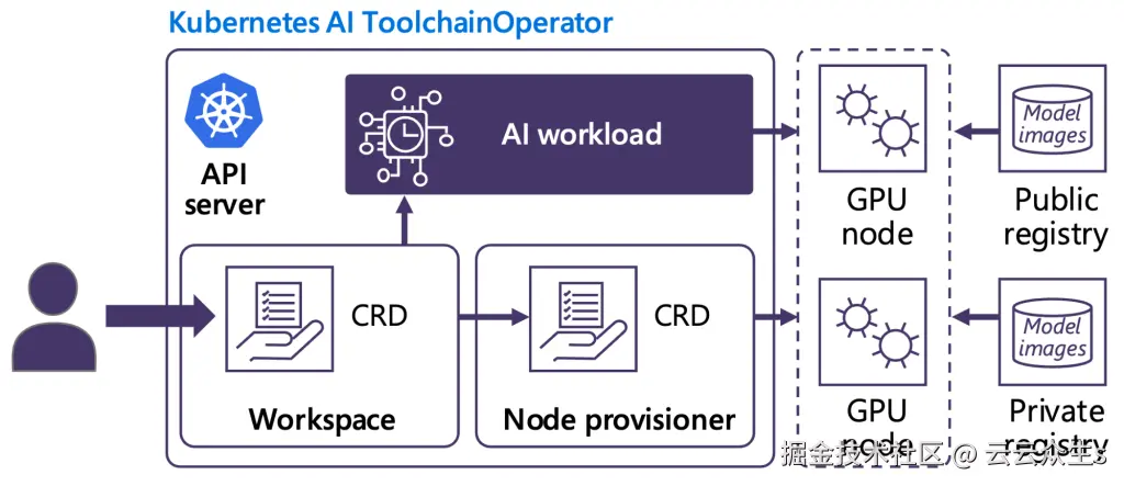 “KAITO 基本上会为您配置 GPU 节点并将它们添加到您的集群中,”微软高级云布道师 Paul Yu 解释道。“作为用户,我只需要将我的工作区部署到 AKS 集群中,这就会创建额外的 CR。”