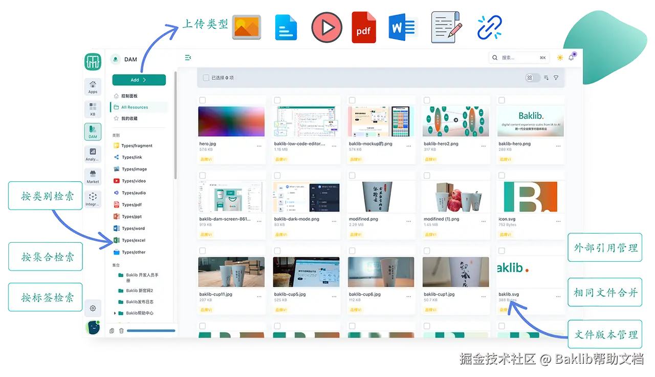 Baklib 市场扩展有助于利用外部系统中的知识库,例如帮助台、聊天、团队协作和翻译服务。