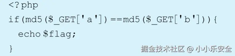 这段代码的大意就是要输入两个值,然后对其进行MD5加密,之后用==(弱类型)去比较,如果两者“相等”则输出flag。典型的弱类型比较,只需要将两个符合如下条件的值输入即可。