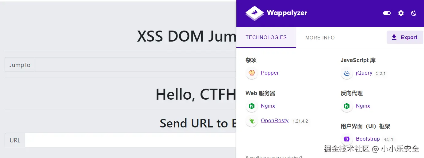 我们通过wappalyzer判断网站引用了jQuery,我们就可以利用$.getScript() 函数来加载并执行来自 xss平台 的JS脚本