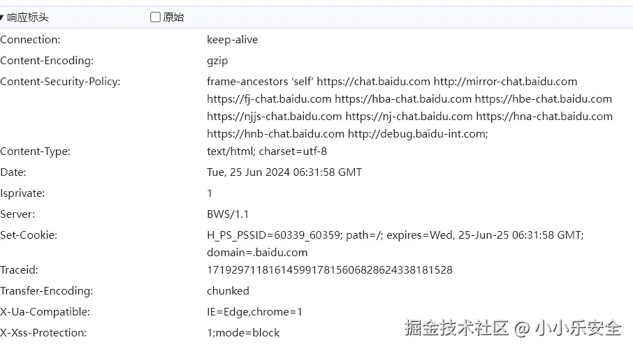 • Set-Cookie:此头用于远程服务器向本地设置Cookie,Cookie是一种凭证,一般用于客户端向远程服务器证明身份