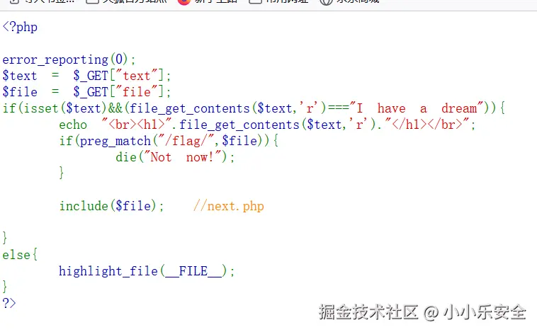 看到用的是file_get_contents()函数打开text,想到用data://协议看到include($file)提示next.php想到将next.php源码转换为base64