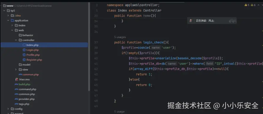 得到解密php源码,我们简单分析一下,我们的目的是调用getFlag()函数并给cmd赋上我们想执行的命令