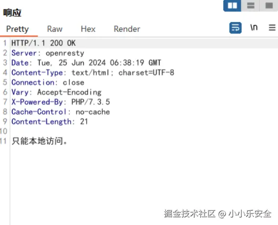 打开靶机可以看到提示只能本地访问