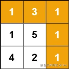 输入: grid = [[1,3,1],[1,5,1],[4,2,1]]