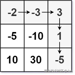 输入: dungeon = [[-2,-3,3],[-5,-10,1],[10,30,-5]]